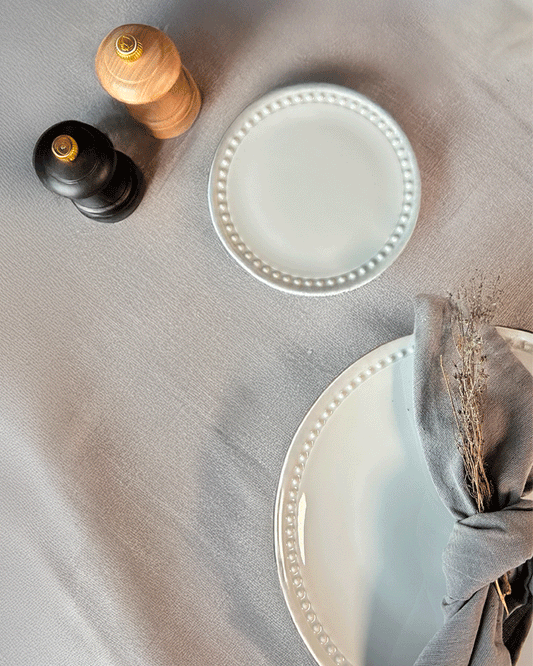 - 16 cm de diamètre – Idéale pour le pain, les amuse-bouche ou les petites entrées. Elle peut également servir de soucoupe pour la tasse à chocolat Beaded, ajoutant une touche raffinée à votre service.