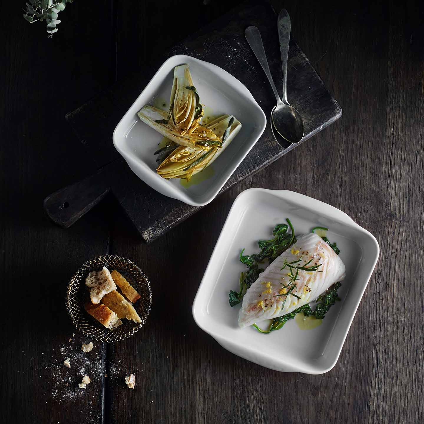 De la porcelaine blanche de qualité française lavable au lave-vaisselle, et qui passe au four et même au congélateur, et surtout pratique pour cuisiner et dresser une belle table au quotidien. Des pièces que nous pouvons garder à vie… A vos fours !